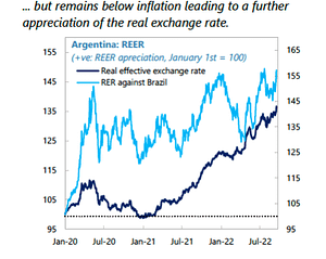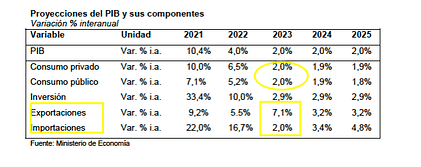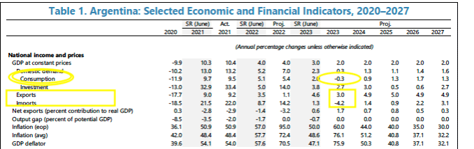 - Según parece hay apreciables diferencias entre las proyecciones macro del proyecto de presupuesto 2023 y el reciente informe del FMI. Mientras el PLP prevé un aumento del consumo (público y privado) de 2%, el FMI estima una caída (-0,3%).