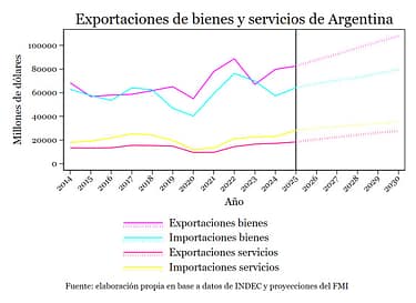 Lo anterior levanta el interrogante de si la resolución favorable de la macroeconomía derivará en forma automática en el aumento de inversión que se necesita para aumentar la oferta exportable. Una macroeconomía ordenada es condición necesaria pero no asegura per se el mayor flujo exportador de cantidad y valor. De un lado, el menú exportador -especialmente aquél que se pronostica como de mayor dinamismo potencial- está concentrado en commodities y éstas, como es sabido, están expuestas a ciclos de precios o de producción. Estos últimos son frecuentes en la producción agroindustrial -el último fue la extendida sequía de 2023. Entonces, más allá de las circunstancias favorables de la coyuntura, Argentina debe adoptar políticas destinadas a mitigar este tipo de riesgos a través de la creación de un fondo de estabilización que, a su vez, supone la generación de ahorro fiscal para su formación. Como se observa, un remedio que, mientras no se consoliden las finanzas públicas en un terreno más firme, no parece estar al alcance de la mano. De otro lado, no se trata solamente de inversiones en proyectos o actividades específicas. La viabilidad de los mismos depende, con frecuencia, de externalidades que condicionan la rentabilidad. El caso más ilustrativo es, nuevamente, el agroindustrial dado que, en razón de su implantación a lo largo y ancho del territorio, exige una infraestructura de transporte y logística de costos competitivos para poder acceder con éxito a los mercados de destino. Finalmente, y sin negar la importancia de las commodities, hay otros complejos exportadores que caen fuera de esa lógica. El más significativo es el sector automotriz, un aportante de más de us$ 8 mil millones en divisas y con elevada participación en el empleo. La industria automotriz viene experimentando un fenómeno de transformación tecnológica a nivel global y que, en el plano regional, ha elegido a Brasil como plataforma de proyección. De ahí que sea necesario disponer de una estrategia para que la industria automotriz pueda estar a la altura de los desafíos del contexto externo. El mercado interno es demasiado pequeño para asegurar su desarrollo. Otro rubro exportador que transcurre con una dinámica marcadamente diferente a los anteriores es el caso de los servicios -especialmente aquellos denominados servicios basados en conocimiento. Argentina dispone de un cluster reconocido y que posee potencial de crecimiento, especialmente si se dedican los esfuerzos necesarios para la formación de recursos humanos. El reciente anuncio de OpenAI de la construcción de un «data center» en la región patagónica ofrece una ventana adicional de oportunidades.