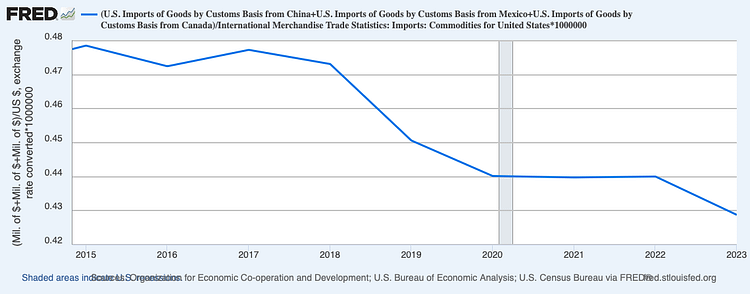 Además de lo anterior, las decisiones de Trump erosionan el proceso de integración comercial del USMCA, un acuerdo preferencial que se consolidó progresivamente desde su inicio en 1994. Sectores altamente interconectados, como la industria automotriz, podrían enfrentar costos significativos a uno y otro lado de la frontera debido a esta disrupción. Adicionalmente, se pone en evidencia la asimetría en la capacidad de negociación de los países. México y Canadá dependen en gran medida del comercio con Estados Unidos, ya que entre el 70% y el 75% de sus exportaciones tienen como destino ese país. En este contexto, el desmantelamiento de la relación comercial trae aparejado costos desproporcionados para estas economías.