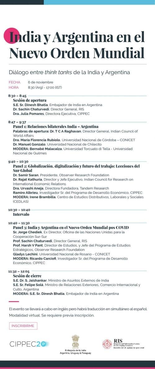 India y Argentina en el Nuevo Orden Global. Diálogo en el marco del T-20, think tanks de India y Argentina