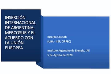 Siguiendo a una invitación del Instituto Argentino de Energía y de su Presidente Jorge Lapeña realicé una presentación acerca de las singularidades de la inserción internacional de Argentina y los desafíos que plantea el Acuerdo del MERCOSUR con la Unión Europea. Conferencia en el Instituto Argentino de Energía, General Mosconi.